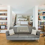 거실의 서재화!! 아이들이 있는 엄마라면 한번쯤은 꿈꿔봄직하죠. 다양한 책과 소품으로 조화로운 책장, 아기자기한 쿠션이 잘 정돈된 소파, 예쁜 조명 아래 긴 테이블, 밖에서 들어오는 따스한 햇살까지를요. 북유럽풍 서재화 거실입니다. 너무 예쁩니다. 하지만 아이 있는 집에서의 현실성은 없네요.;;; 빈번한 이사가 있을 것을 고려해 목공이 들어가는 맞춤가구(붙박이)는 최소화하고, 가지고 다닐 수 있는 가구나 소품으로 대체할 예정입니다. 현실사진 투척! 미래의 저희 집 거실입니다. 양 옆으로 책장을 놓고 가운데는 소파와 긴테이블을 넣을 거예요. Left : 책장 + 아트월 거실 왼쪽 부분은 목공없이 현재 모습 그대로 움푹 들어간 부분만 그레이톤 벽지를 이용하고, 뒷판이 뚫린 낮은 책장을 놓을 예정입니다. 책장..