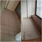 오늘부터 새로운 공정에 들어갔습니다. 바로 베란다 탄성코트와 필름작업인데요. 베란다는 세라믹으로 앞뒤베란다 전체를 했어요. 목공작업으로 보드 중간중간 벌어진 곳을 채워 면을 고르게 하는 퍼티 작업으로 인해 10만원 추가되었습니다;;; 이건 작업 전 상담 시 5~10만원 추가될 수 있다고 했었어요. 목공 작업이 잘 된 편이라 5정도 생각했는데 역시나 최대치가;;; 흐흐흐, 그래도 다른 작업도 같이 해주셔서 만족합니다. 세라믹인데 많이 하시는 진주펄?? 색이라고 하는데 사진 상으로는 그냥 하얗게 보이네요. 전에 탄성코트 작업한 건 색도 이쁘게 들어가서 그런걸 기대했는데 좀 밋밋했구요. 그래도 곰팡이들 안보이고 깔끔해져서 좋아요~ 3일정도는 문 열어두고 잘 말려야 된다고 합니다. 앞뒤베란다 85만원 + 10만..