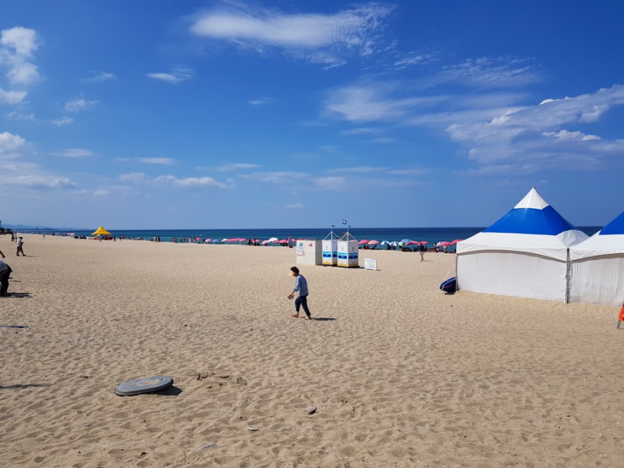 해변을 둘러보고자 다시 모래 위를 걸었다.