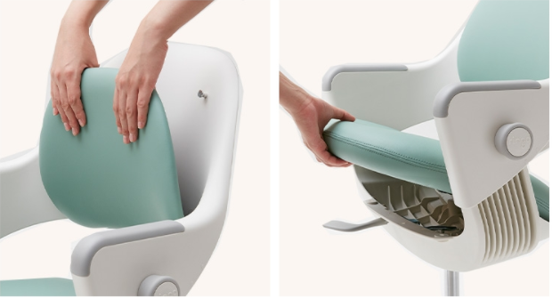 세탁이 편리한 패브릭 커버를 제공합니다. 부드러운 감촉의 섬유를 사용했으며 좌판 커버 뒷면에 실리콘 재질 패턴이 있어 미끄러지지 않습니다.