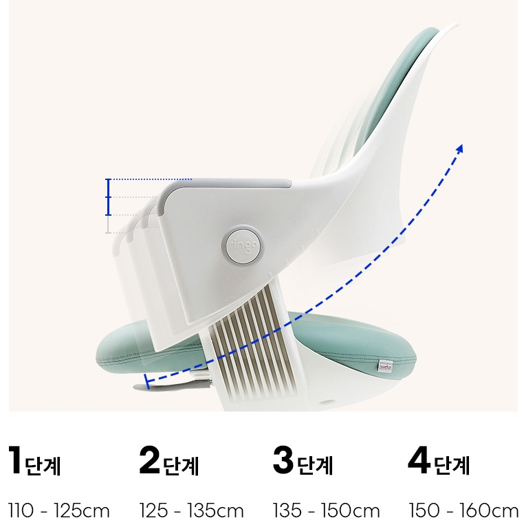 국민 초등학생 의자 시디즈 링고 고정형은 신체에 맞게 등받이를 조절할 수 있습니다. 110cm에서 160cm 까지 사용가능하며 총 4단계로 의자를 신체에 맞게 바꿀 수 있습니다. 4단계 조절이 가능한 그로잉 기능은 자라나는 아이의 체형에 맞게 바른자세를 유지시키고 집중력 향상에 도움을 줍니다.