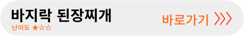 > 바지락 된장찌개 : 육수없이 쉽게 끓일 수 있는 된장찌개입니다. 바지락을 넣고 된장을 풀어 끓이면 감칠맛이 더해져 깊은 맛을 느낄 수 있어요.